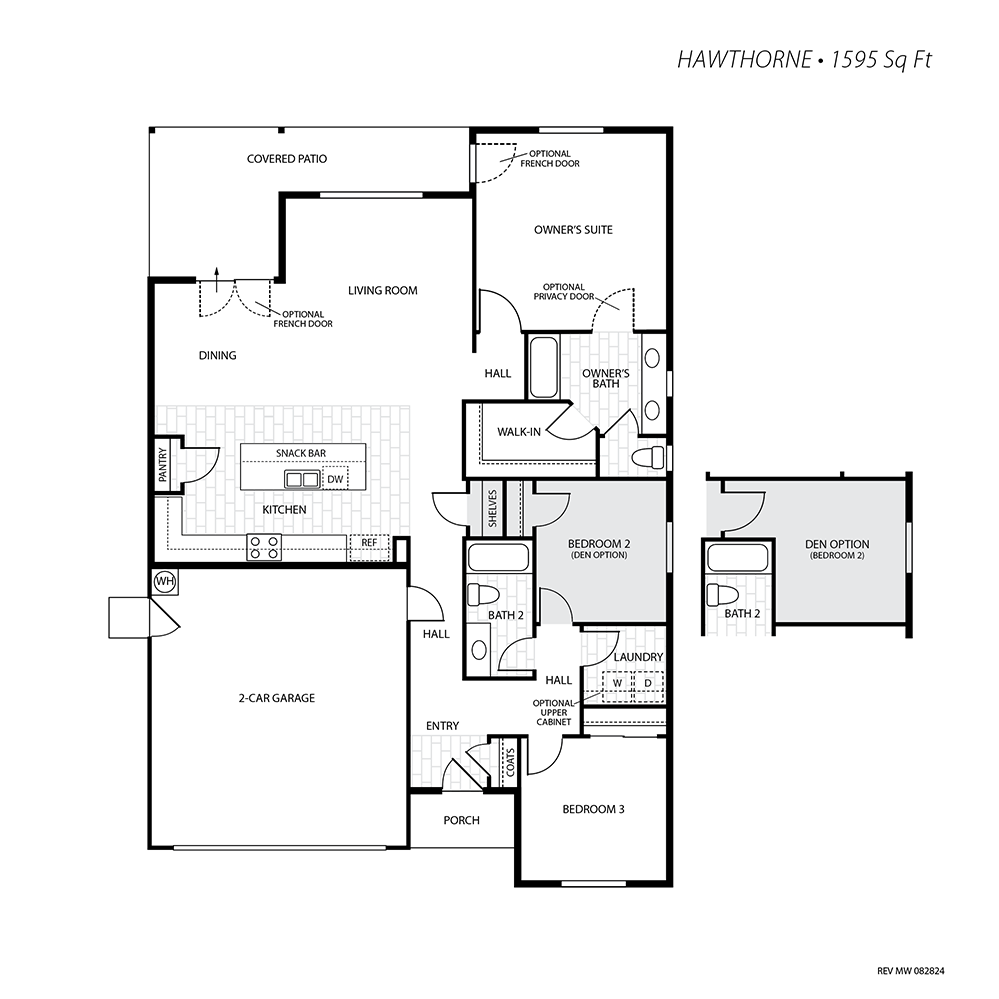 This Hawthorne home offers 1,595 square feet of living space, 3 bedrooms and 2 bathrooms. This quality-crafted home features a Modern Cottage styled exterior design, with a charming front porch, covered patio and 2-car garage with inviting carriage lights. On the interior of the home, you will find quality stainless steel appliances, a large center island with a convenient snack bar, pantry and stylish shaker cabinetry. This home is located at Maplewood in Visalia and ideally located near popular shopping centers and restaurants.