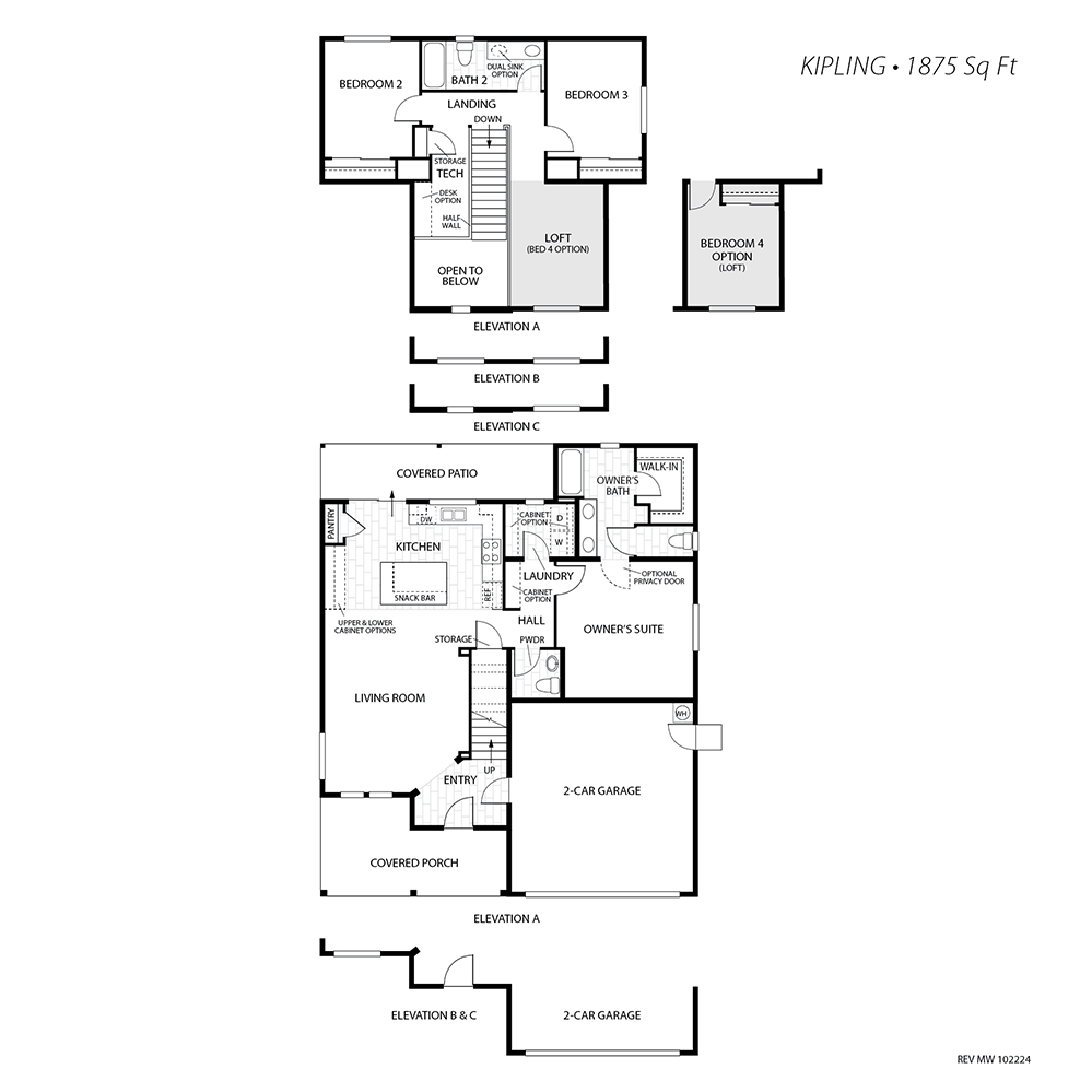 patio and 2-car garage with inviting carriage lights. On the interior of the