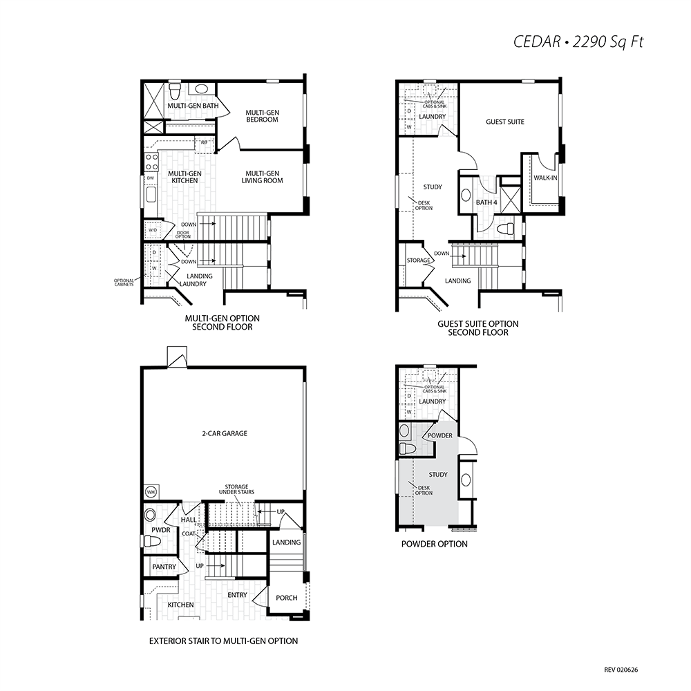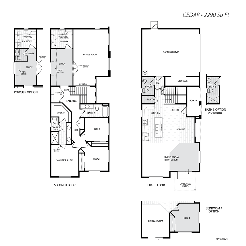 The Cedar is 2,290 square feet and features 3 bedrooms, 2.5 bathrooms, a bonus room and a 2-car garage as the standard configuration. Ask the Granite Hills Sales Representative about flexible room options such as an Office (first floor), Fourth bedroom and Third bathroom (first floor), Multi-Gen option (second floor), Exterior stair to Multi-Gen option, and Guest Suite option (second floor). The exterior designs are built in the architectural traditions of Modern Cottage and Farmhouse. This plan is thoughtfully designed with a charming covered front porch, inviting carriage lights with stone or brick veneer and decorative siding on selected exteriors. On the interior of the home, you will find standard features such as wood-look tile flooring at the entry, kitchen, dining, baths, and laundry room, quality Whirlpool® stainless steel appliances, naturally beautiful granite countertops, center island with convenient snack bar, pantry, and stylish shaker cabinets. Contact the sales office to find out more about this plan’s availability and how you can customize your home. This plan is located at Granite Hills in West Visalia with convenient access to Highway 99. Granite Hills shares a community park with Stonebrook.