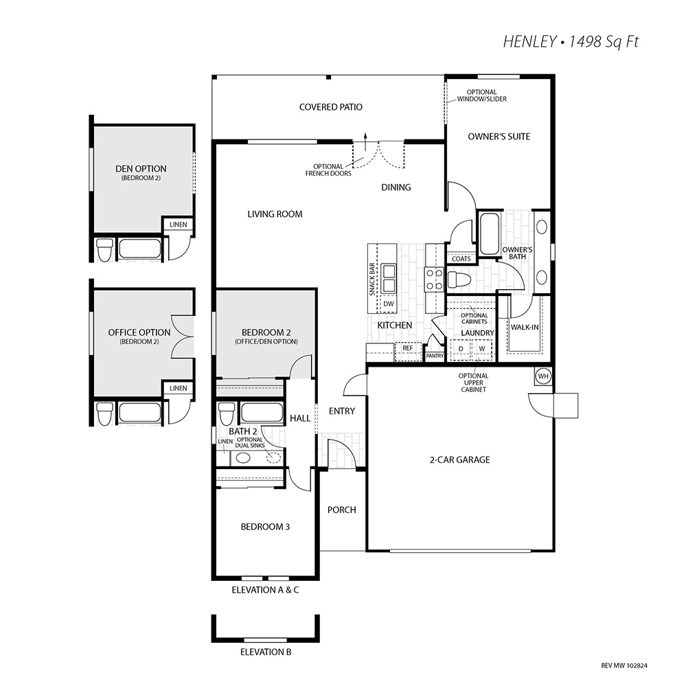 The Henley floorplan is 1,498 square feet, and features 3 bedrooms, 2 bathrooms, and a 2-car garage. Ask the Maplewood Sales Representative about flexible room options such as a den or office. This quality-crafted plan features Modern Cottage, Craftsman, and Modern Farmhouse styled exterior designs that create an inviting atmosphere of individuality, with charming front porches, a covered patio, and more. On the interior of the home, you will find standard features such as tile flooring at the entry, kitchen, baths, and laundry room, Whirlpool ® electric range, ventilation hood, and dishwasher, and stylish shaker cabinetry. Call the sales office to find out more about this plan’s availability and how you can customize it. This plan is located at Maplewood in Visalia. Maplewood is ideally located on the East side of Visalia near popular shopping centers and restaurants.